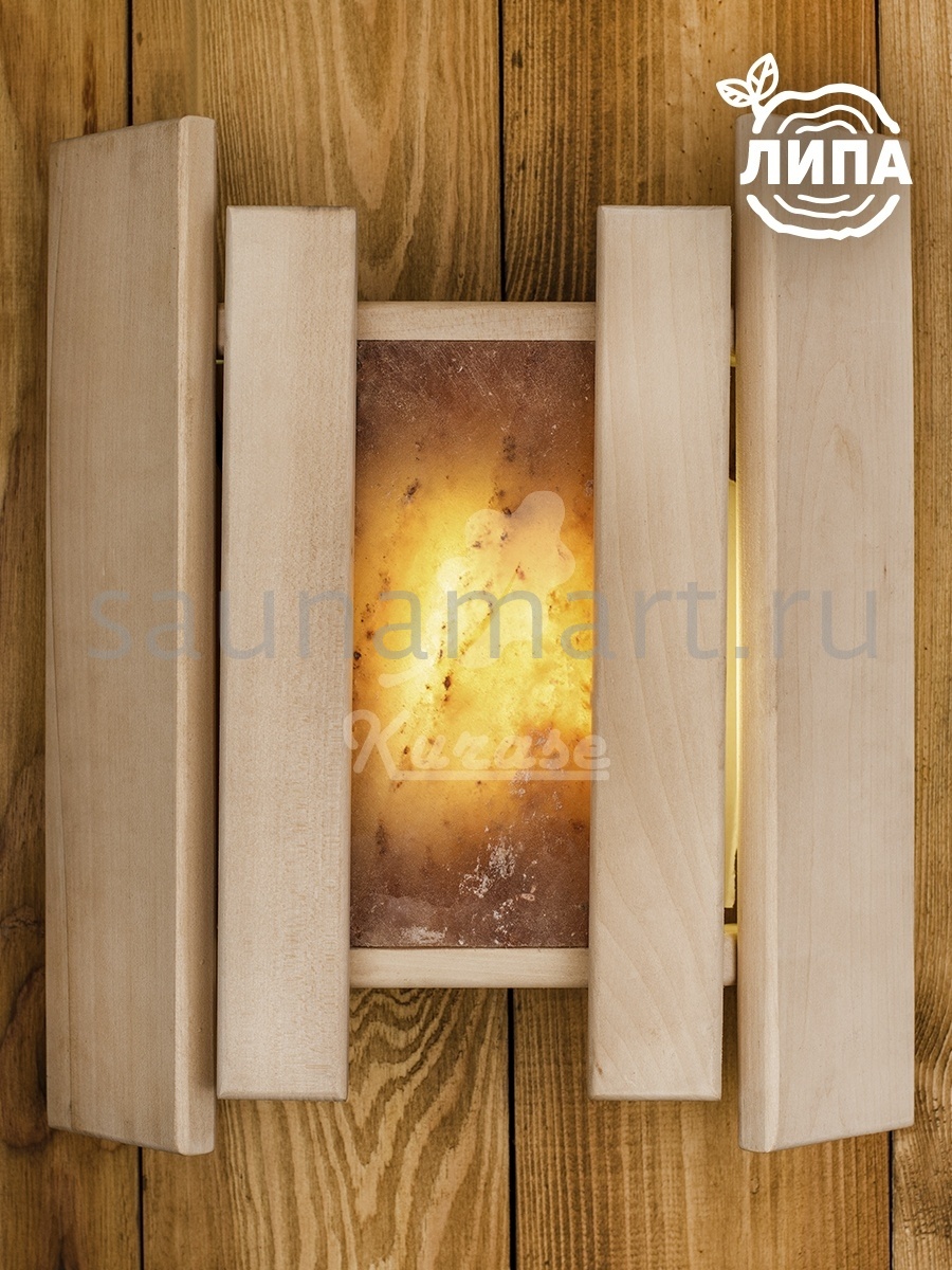 Натуральные материалы, интересный дизайн, приятная фактура древесины и уникальный природный рисунок соли –  сделают абажур главным элементом декора бани, создающим неповторимую атмосферу. Для изготовления абажура используется древесина ольхи премиального качества, а так же декоративная вставка из 100% натуральной гималайской розовой соли, создающая приятный теплый свет. Абажур поможет организовать грамотное освещение:  даст мягкий рассеяный свет непосредственно в парной или комнате для отдыха.  Абажур для светильника оснащен угловым креплением, легко устанавливается на стену и делает освещение в помещении сауны ещё более атмосферным и расслабляющим. При нагревании, вставка в абажуре из гималайской соли ионизирует воздух, что дает оздоровительный эффект, улучшает иммунитет и благотворно влияет на воздух в помещении. Размер изделия: 34,5х30,5х9 см, размер вставки из гималайской розовой соли 19,5х10х2,5 см.