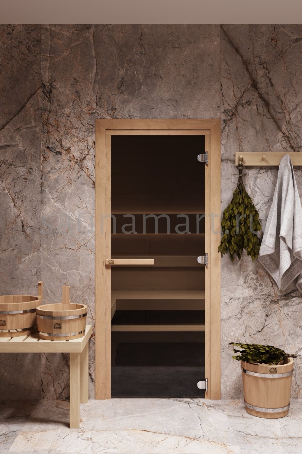 Дверь для сауны 2000х700 Бронза 8 мм 3 петли ольха