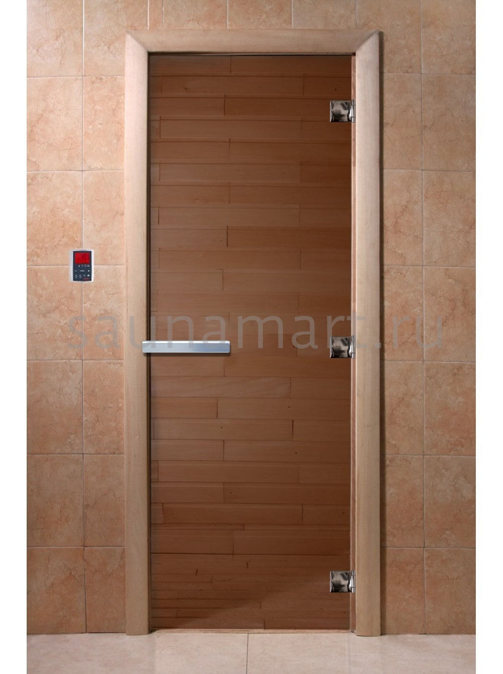 Дверь для сауны 2000х800 Бронза 8 мм 3 петли ольха