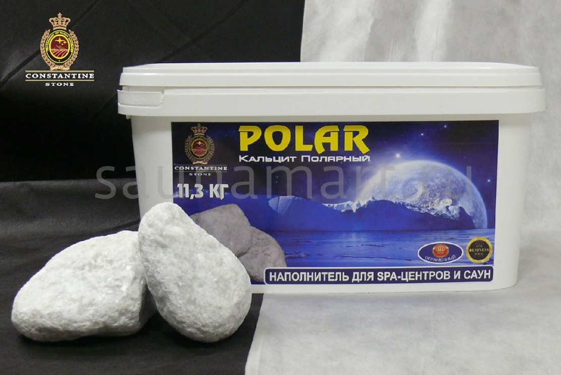 Камень для бани «POLAR Кальцит Полярный» - это камень-наполнитель, представляющий собой произведенную по оригинальной технологии, обработанную, фракционированную и особым образом смешанную продукцию из натуральных горных пород для печей открытого горения, электропечей, газовых печей, парогенераторов, лито- и стоун-терапии. Используется в банях, саунах, турецких банях (хамам), SPA-центрах и центрах мануальной терапии.