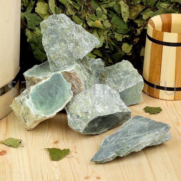 Камень жадеит колотый фракции 40-80 мм — натуральный минерал для банных печей. Упаковка: мешок 10 кг. Происхождение: Урал, Россия.