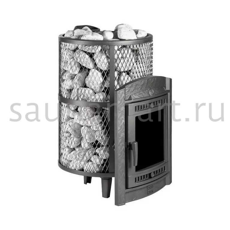 Компактная и экономичная модель с коротким топливным тоннелем. Кожух печи изготовлен в виде сетки из стали и полностью заполняется природными камнями, обеспечивая высокую динамику нагрева парильного помещения.