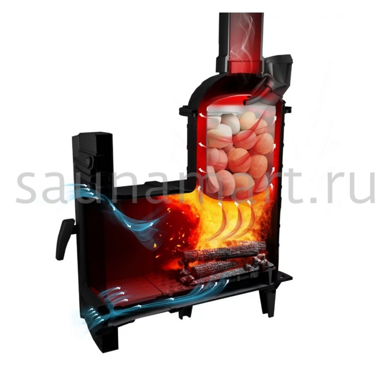 Компактная и экономичная модель. Кожух печи изготовлен в виде сетки из стали и полностью заполняется природными камнями, обеспечивая высокую динамику нагрева парильного помещения.