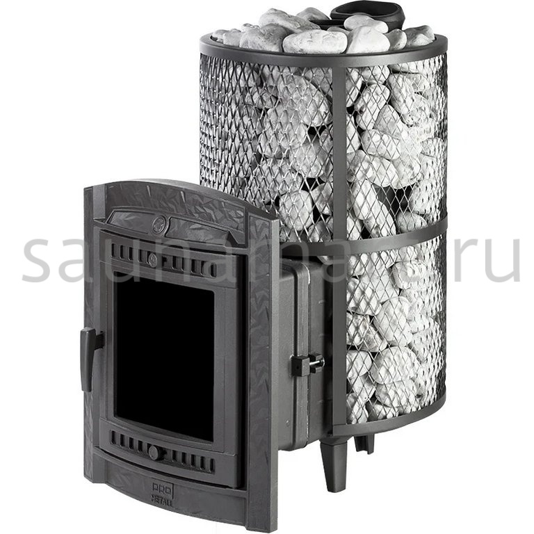 Модель с увеличенной каменкой и повышенной производительностью. Кожух печи выполнен в виде сетки из нержавеющей стали и полностью заполняется природными камнями, что обеспечивает высокую динамику нагрева парильного помещения.
