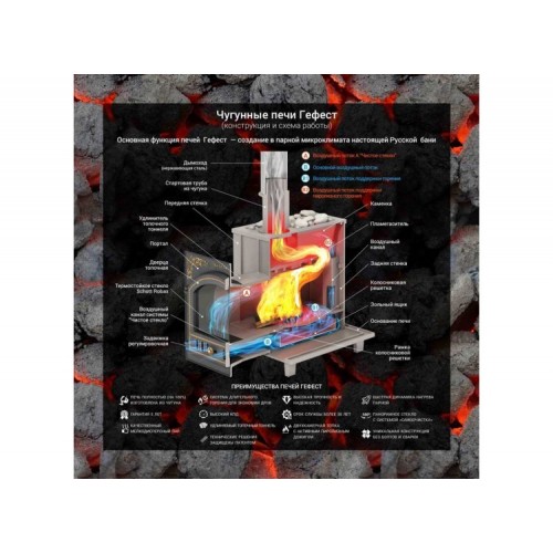 • Печь полностью изготовлена из чугуна