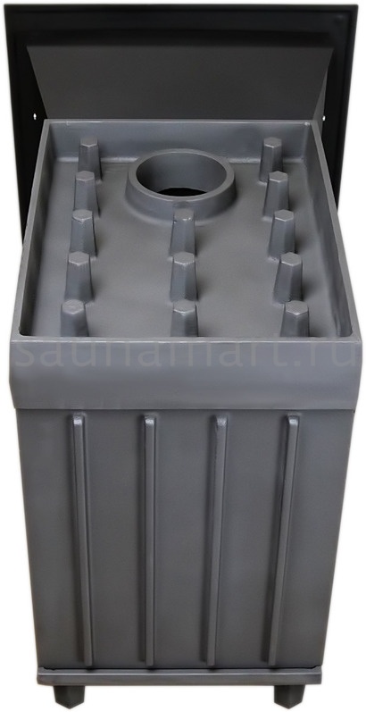 Печь для бани Гроза разработана как максимально экономичная модель для частного применения. Основной принцип работы печи сохранён – получение пара с теплоёмкой каменки прямого нагрева. Каменка является сводом топки, нагревается с нижней поверхности, снабженной теплосъемными шипами для увеличения контакта с пламенем.