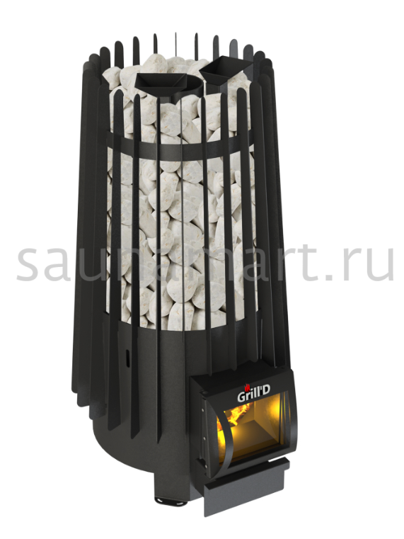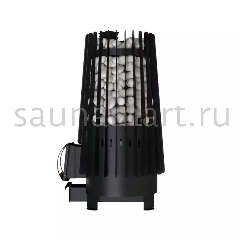 Печь топится из парильного помещения. Закрытая каменка вмещает 30 кг закладки камней. Температура в ней достигает 550 градусов. Две воронки для подачи воды размещены на разной высоте.  Таким образом вы можете получить 3 вида пара от мелко дисперсного до видимого. Внутренняя каменка быстро восстанавливается, с такой печью можно проводить более 20 парений в день. В домашней бане эта модель порадует своих владельцев предсказуемостью и долгим сроком эксплуатации.