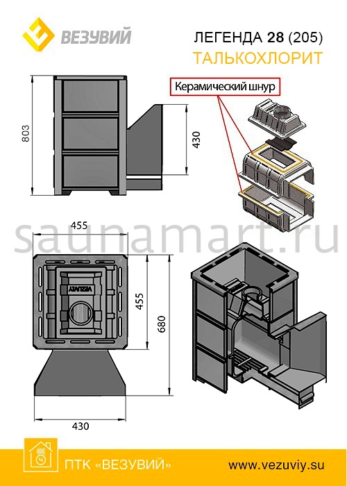 Печь дровяная ВЕЗУВИЙ Легенда 28 талькохлорит дверца 205