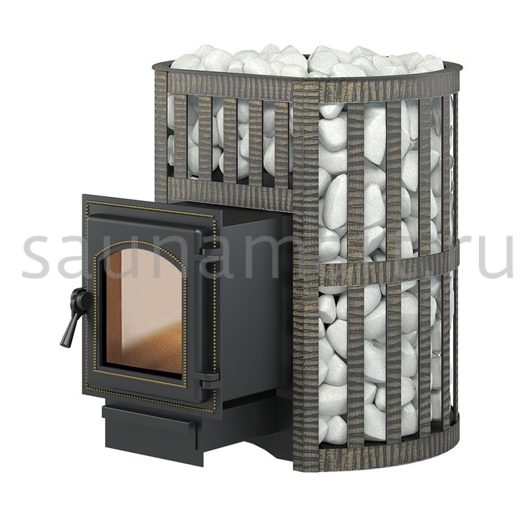 Банная чугунная печь Легенда Ковка 22 (270) укомплектована чугунной герметичной дверцей Везувий 270 с жаропрочным стеклом «SHOT ROBAX». Конвекционно-вентилируемый кожух "Ковка" изготовлен из металлической текстурированной полосы, покрашенной термостойкой краской и покрытой патиной «Бронза».