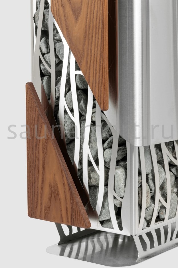 Элегантная электрокаменка с комбинированным корпусом из матовой нержавеющей стали AISI 304 и деревянного ограждения. Особенности конструкции обеспечивают мягкий регулируемый пар и комфортный микроклимат благодаря встроенному ионизатору с кварцем и гималайской солью. Возможность добавления ароматических веществ создает индивидуальную атмосферу в парной.