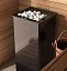 В печи 2 источника тепла: конвектор для нагрева воздуха и закрытая каменка с камнями для получения пара. Температура в закрытой каменке 550 градусов. Вы поддаёте воду, а температура всегда стабильна, всегда готовый пар в одном режиме. Управление печью с помощью пульта по каналу Bluetooth и мобильного приложения.