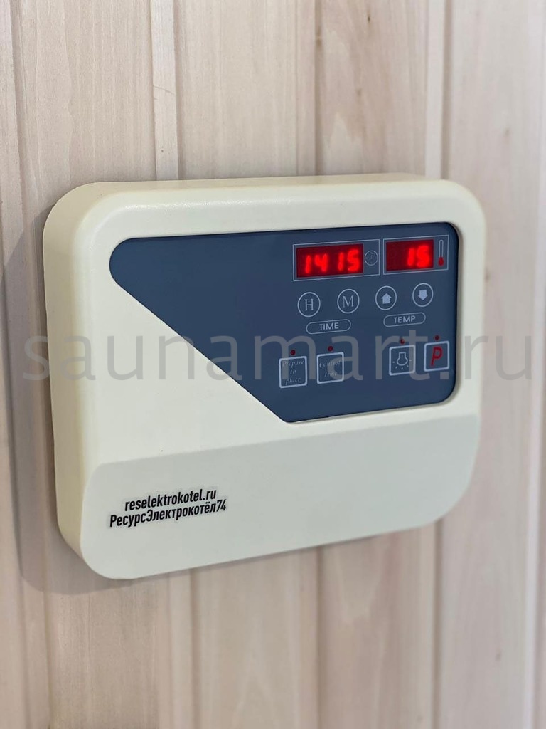 Пульт управления элeктрoкaмeнкой (электропечью для сауны) ПУЭКМ "Ресурс" цифровой программируемый 9 кВт. Пульт устанавливается в предбаннике, а датчик заводится в парилку.