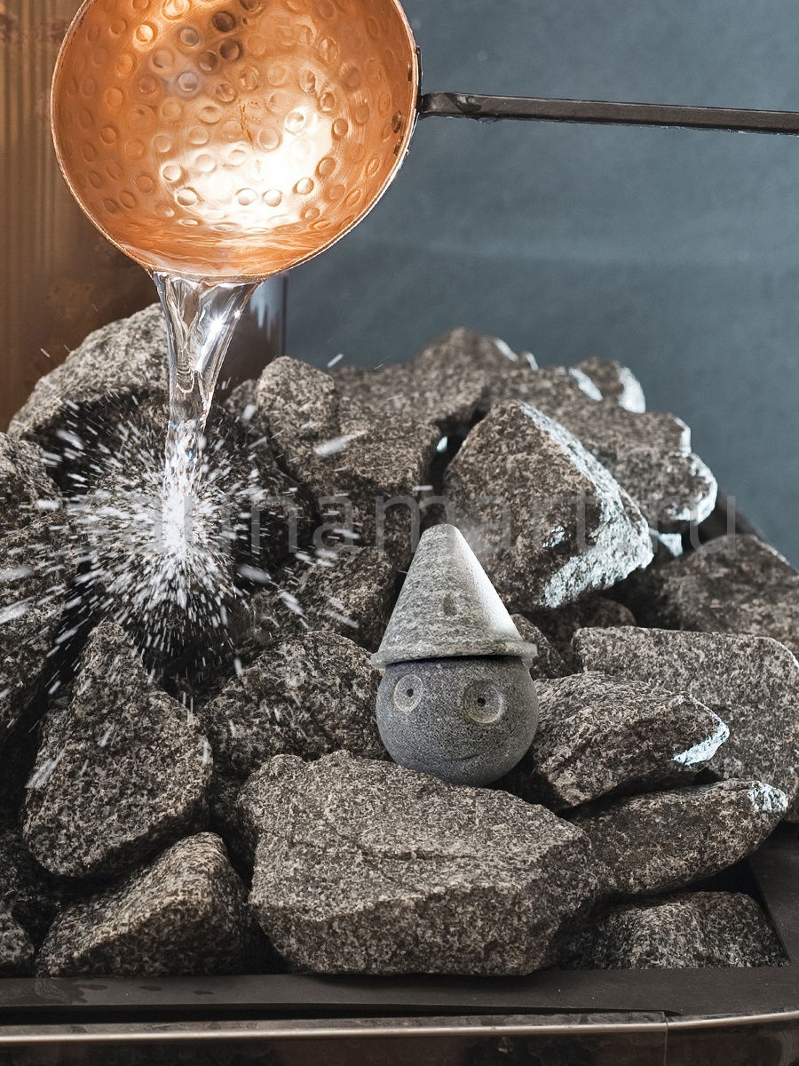 Чаша для арома-масел R-501 от компании SAWO - это отличный подарок-сувенир для себя или своих близких. Чаша сделана из натурального камня талькохлорита в форме улыбающегося человечка с причудливым головным убором. Даже внешний вид изделия поднимает настроение и настраивает на нужный лад. Установите чашу SAWO R-501 на край вашей каменки во время парения или поставьте её в комнате отдыха и наслаждайтесь ароматерапией.
