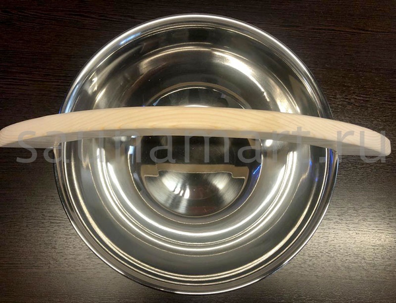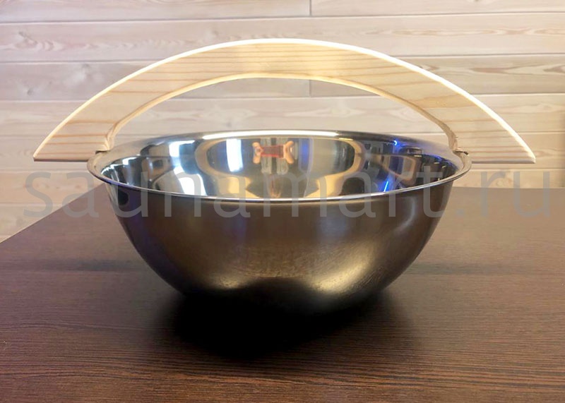 Чаша из нержавеющей стали – это незаменимый при проведении банных процедур аксессуар. В него набирают воду с тем, чтобы потом зачерпывать ее ковшом и подливать на камни, получая большое количество пара. Емкость изготовлена из нержавеющей стали, что позволяет ей не бояться контактов с водой и высокими температурами. Материал, из которого изготовлена емкость, не подвержен коррозии при контакте с влагой. Чаша оборудована деревянной ручкой, которая позволяет комфортно и безопасно ее перемещать. Для безопасности и сохранности камней рекомендуется подогревать воду, используемую для получения пара. Вместимость чаши составляет шесть литров.
