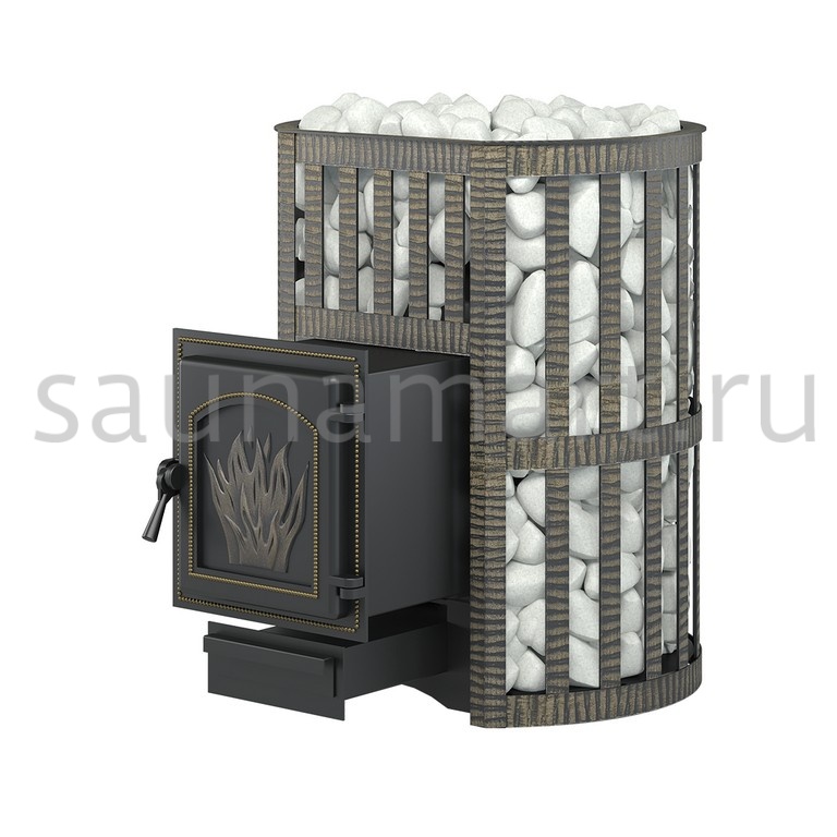 Банная чугунная печь «Легенда Ковка 28 (271)» укомплектована чугунной герметичной дверцей Везувий 271. Конвекционно-вентилируемый кожух «Ковка» изготовлен из металлической текстурированной полосы, покрашенной термостойкой краской и покрытой патиной «Бронза».