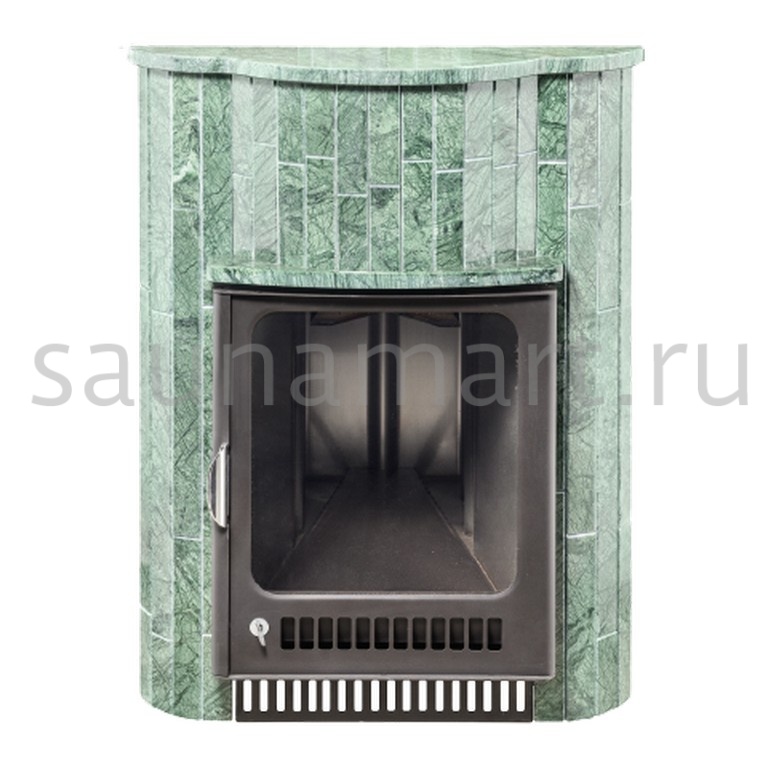 Для печи «Оптима» серии ПФ производитель V?hringer выпускает порталы из натурального мрамора, змеевика и жадеита. Облицовочные материалы поступают на завод в слэбах, заготовки разрезают на пластины, которые затем навешивают на печь.