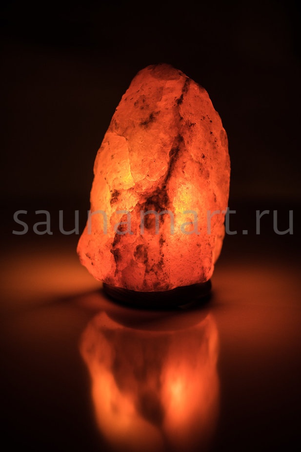 Лампа изготовлена из куска Гималайской соли розово-красного оттенка на ПЛАСТИКОВОЙ подставке. Достоинством данной лампы является низкая стоимость.