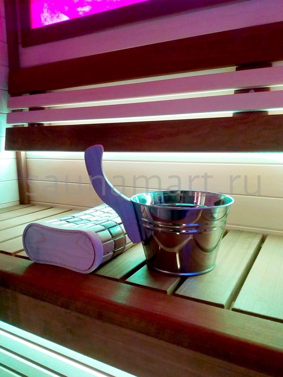 Необычный аксессуар для бани и сауны. Ушат изготовлен из высококачественных материалов, имеет оригинальный дизайн, удобен в использовании. Нержавеющая сталь, из которой выполнен ковш, отличается стойкостью к коррозии, эстетичностью и долгим сроком службы.