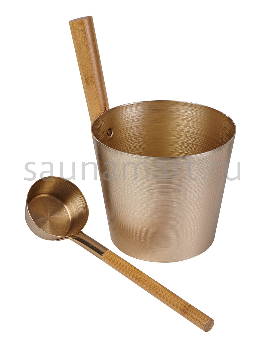 Ведро для бани и сауны изготовлено из алюминия и термообработанного бамбука.