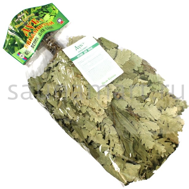Листья и веточки дуба богаты эфирными маслами и дубильными веществами. Дубовый веник эффектно выглядит, ароматен, а благодаря особой форме резных и широких листьев он способен отлично впитывать пар.